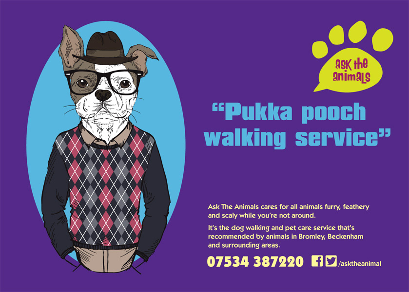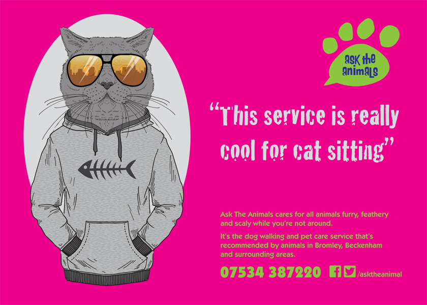 This was a branding and advertising project for a new dog walking, cat sitting and pet care business.